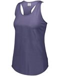 Augusta Girls Triblend Tank. 3.8 ounce, 50% polyester/25% cotton/25% rayon tri-blend knit. Ladies' fit. Fits loose to body. Tear away label. Scoop neck. Racerback with keyhole. Contoured bottom