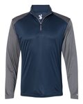 Badger Men's Ultimate Softlock 1/4 Zip Jersey. 100% Soft polyester moisture management/antimicrobial performance fabric. UVA and UVB sun protection in areas covered by the shirt (UPF 50+)Supersoft interlock fabric for comfort. elf-fabric collar with 7 locking zipper. Contrast collar, zipper, sport shoulder, and sleevesBadger sport paneled shoulder for maximum movement. Double-needle hemmed bottom. Badger heat seal logo on left sleeve.